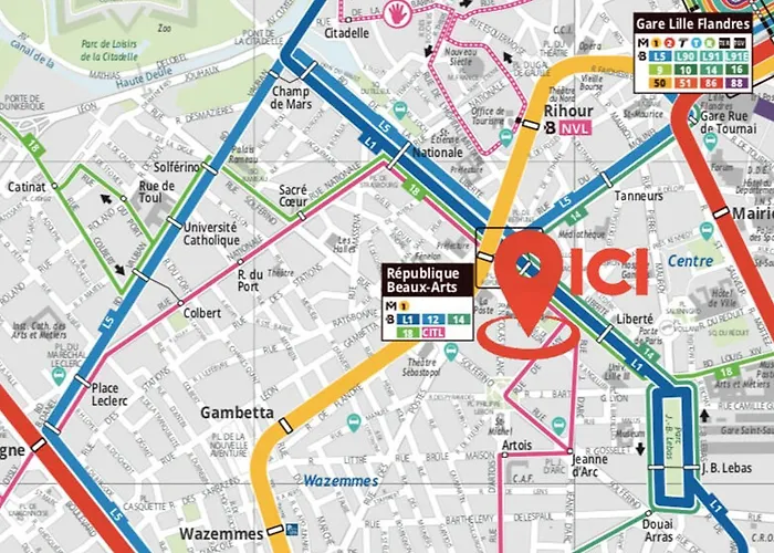 Deze accommodatie ligt in Vieille Ville wijk, naast Église Sainte-Catherine de Lille en binnen enkele minuten lopen naar Euralille. Het centrum van Rijsel is 10 minuten lopen bereikbaar. Le Petrouchka Cabaret omvat ook de Franse keuken, binnen 5 minuten wandelen hiervandaan.